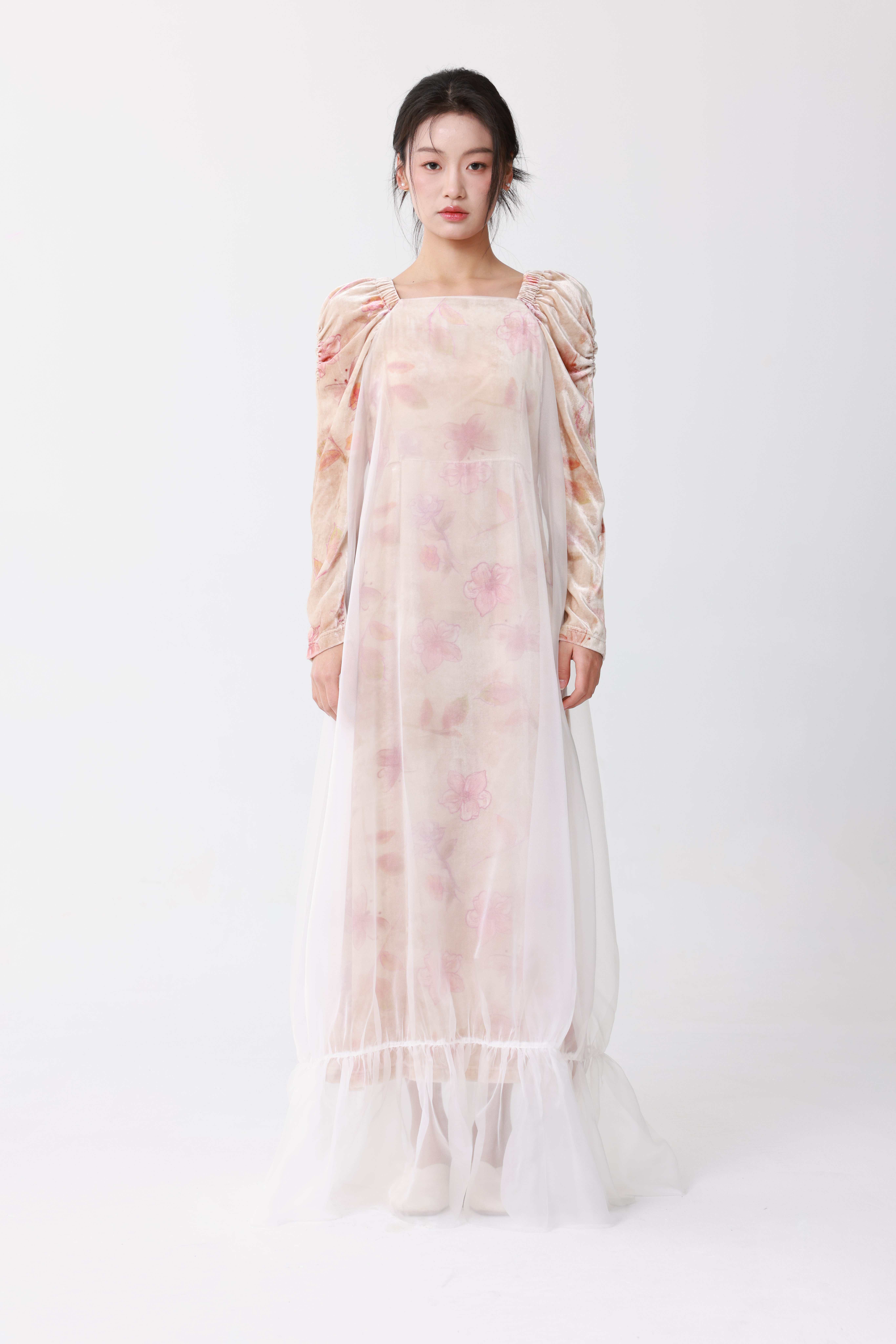 丝绒花卉印花长裙