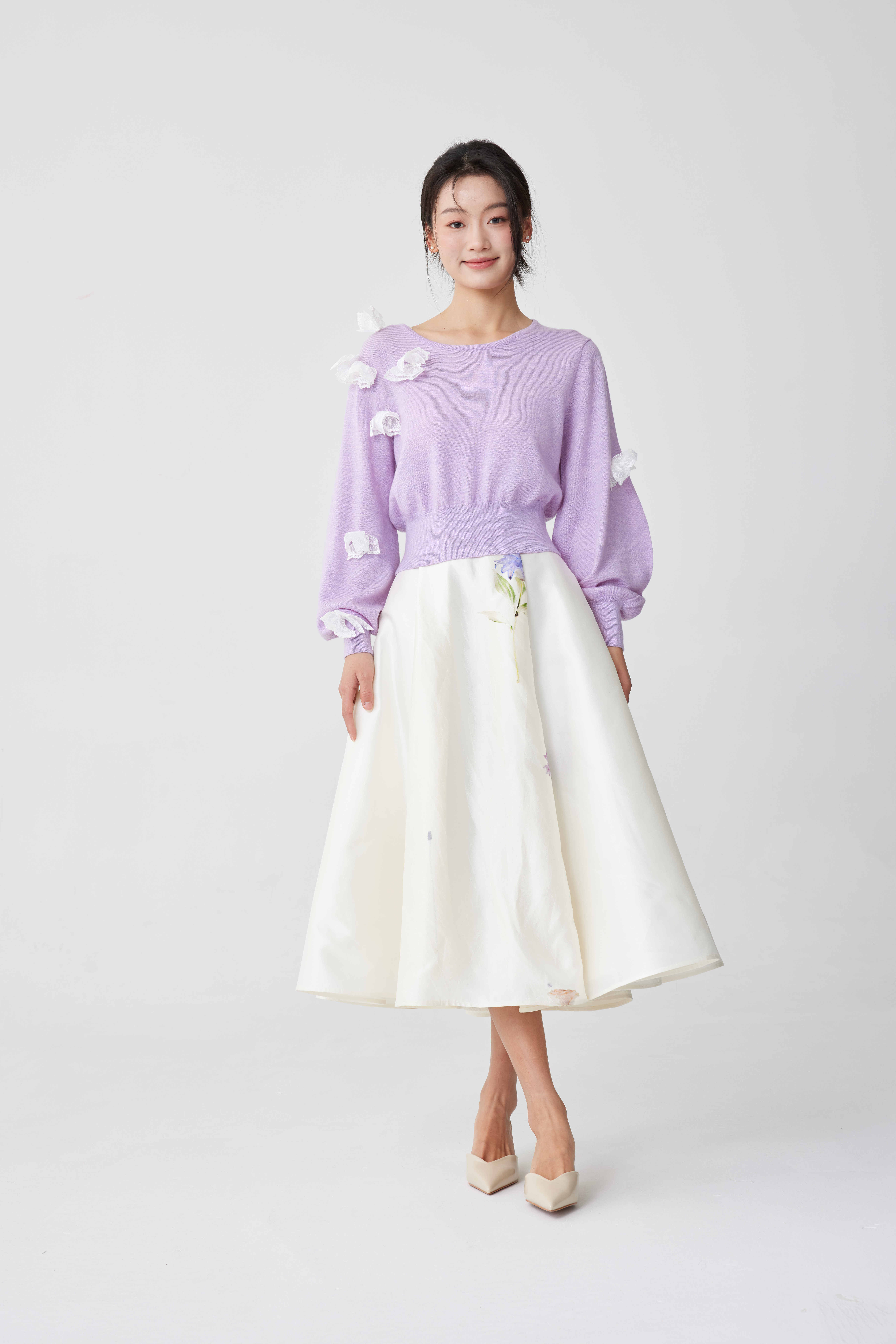 毛衫绣球拉花套装