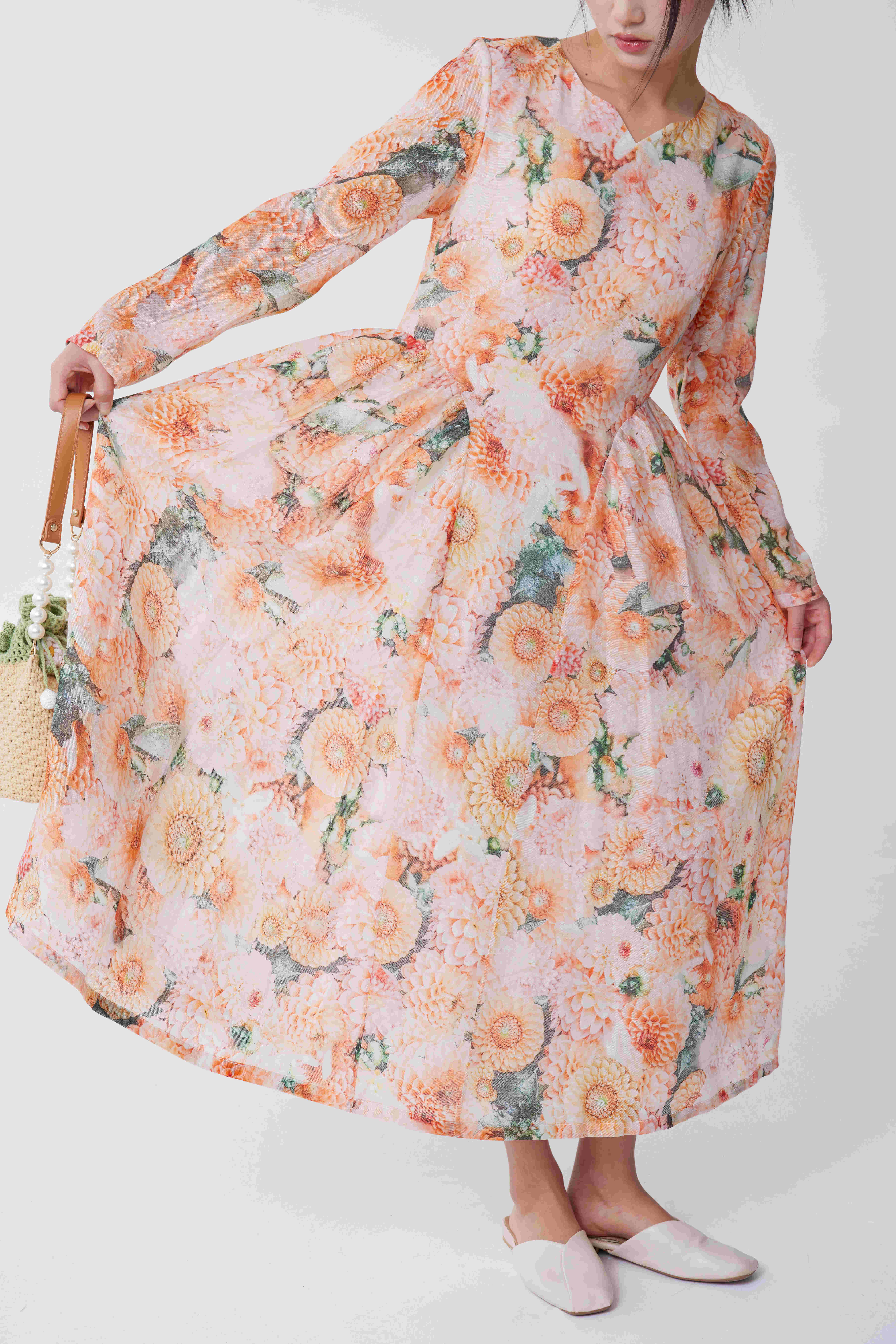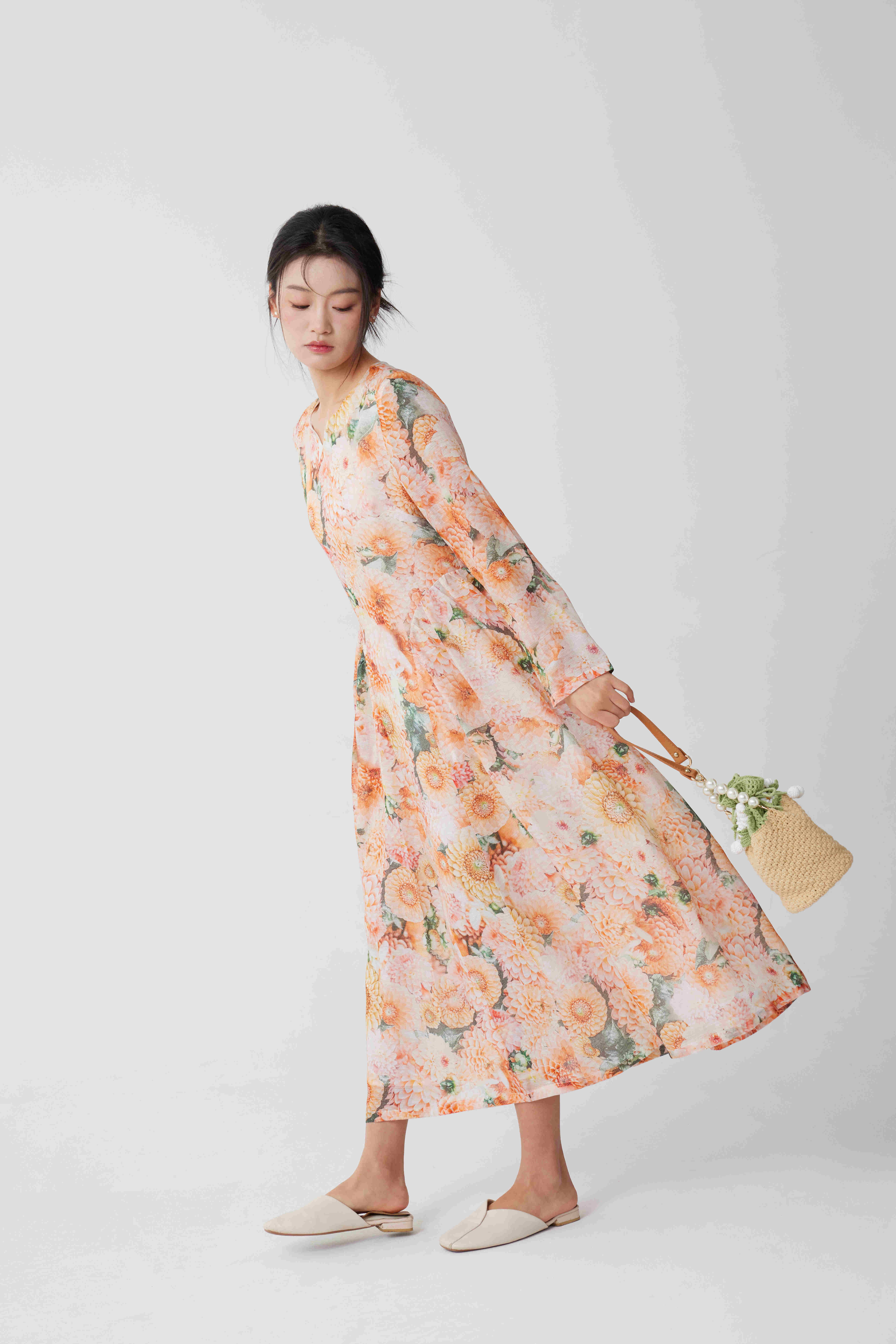 向日葵印花连衣裙