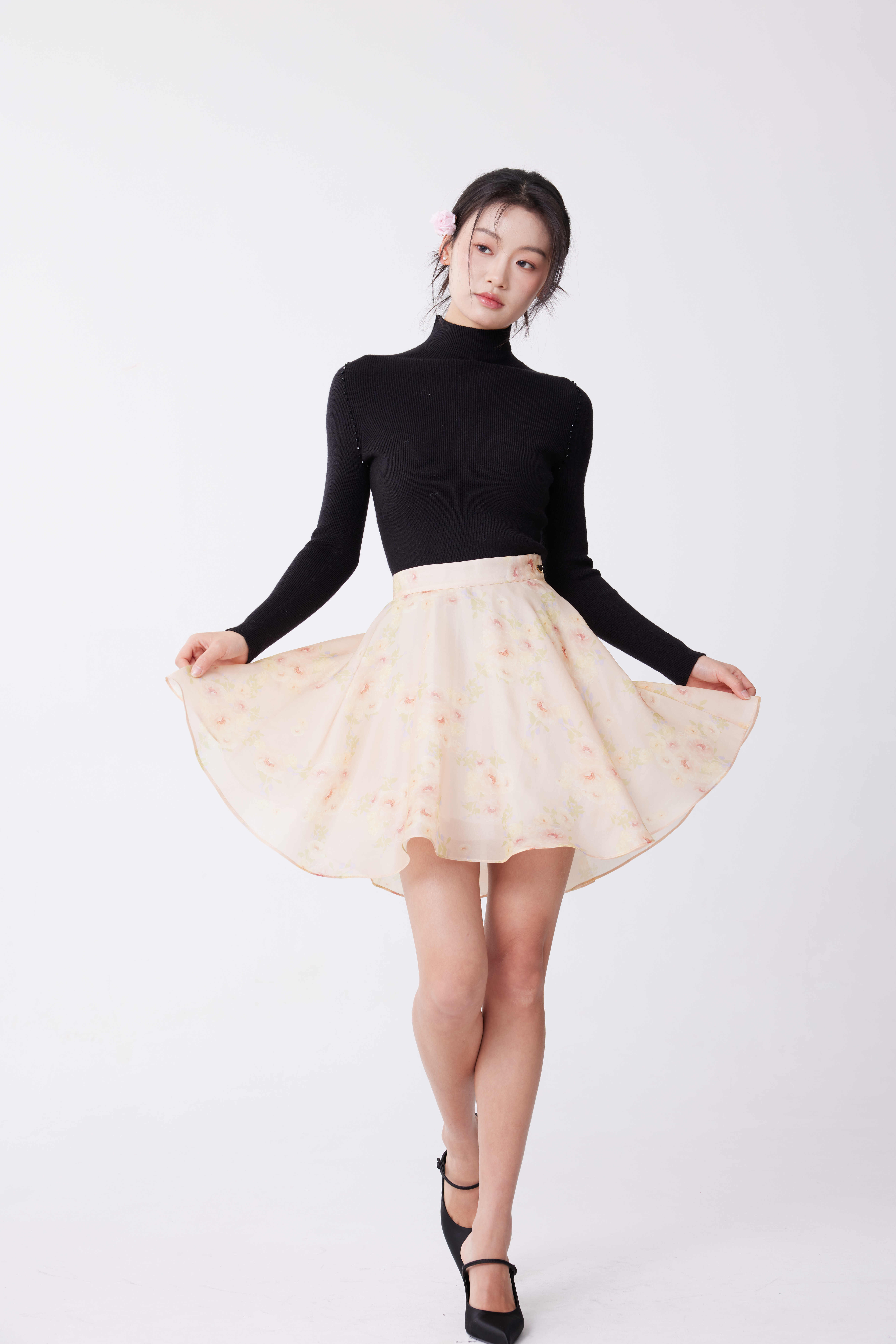 玫瑰印花短裙