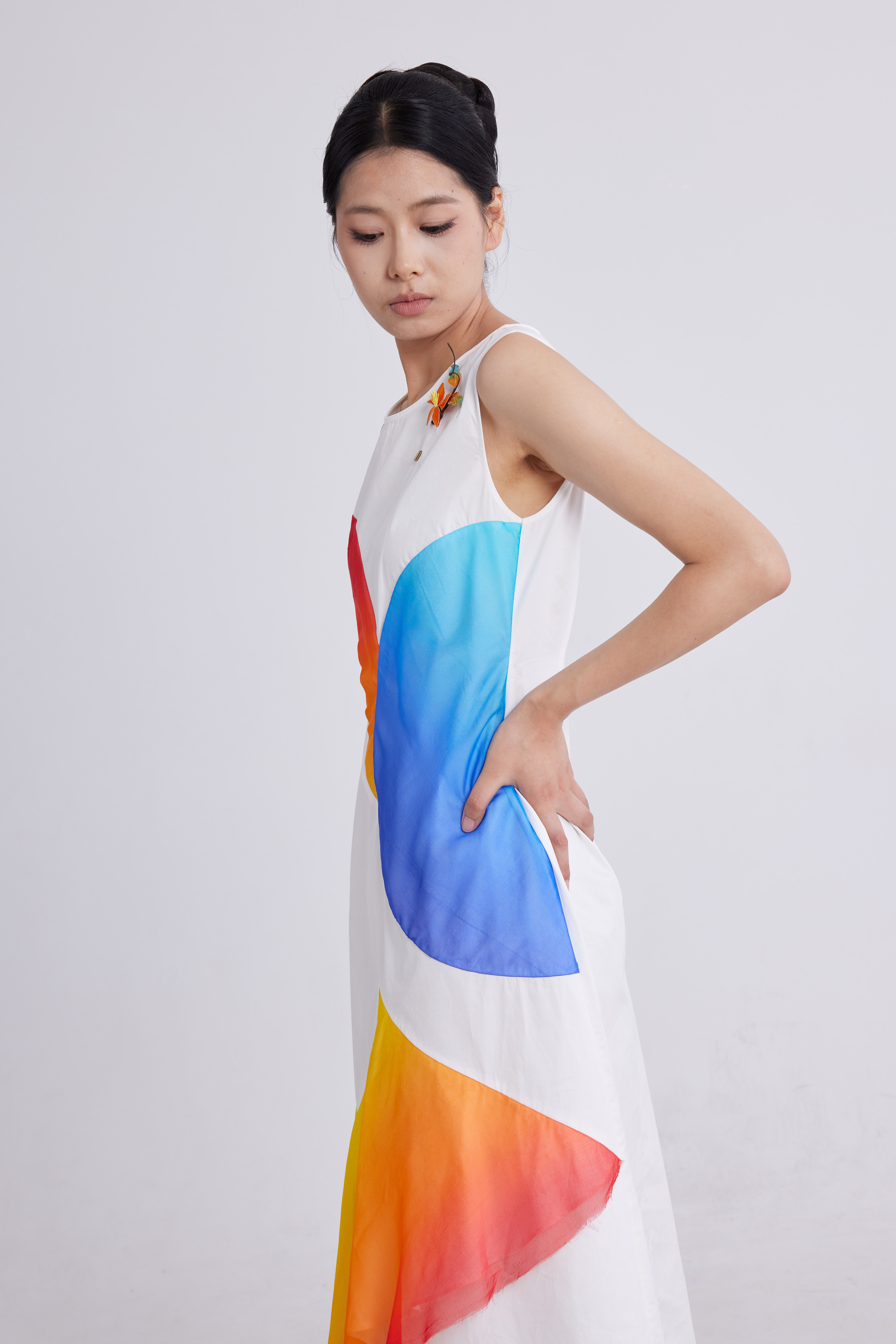 扇形色差连衣裙
