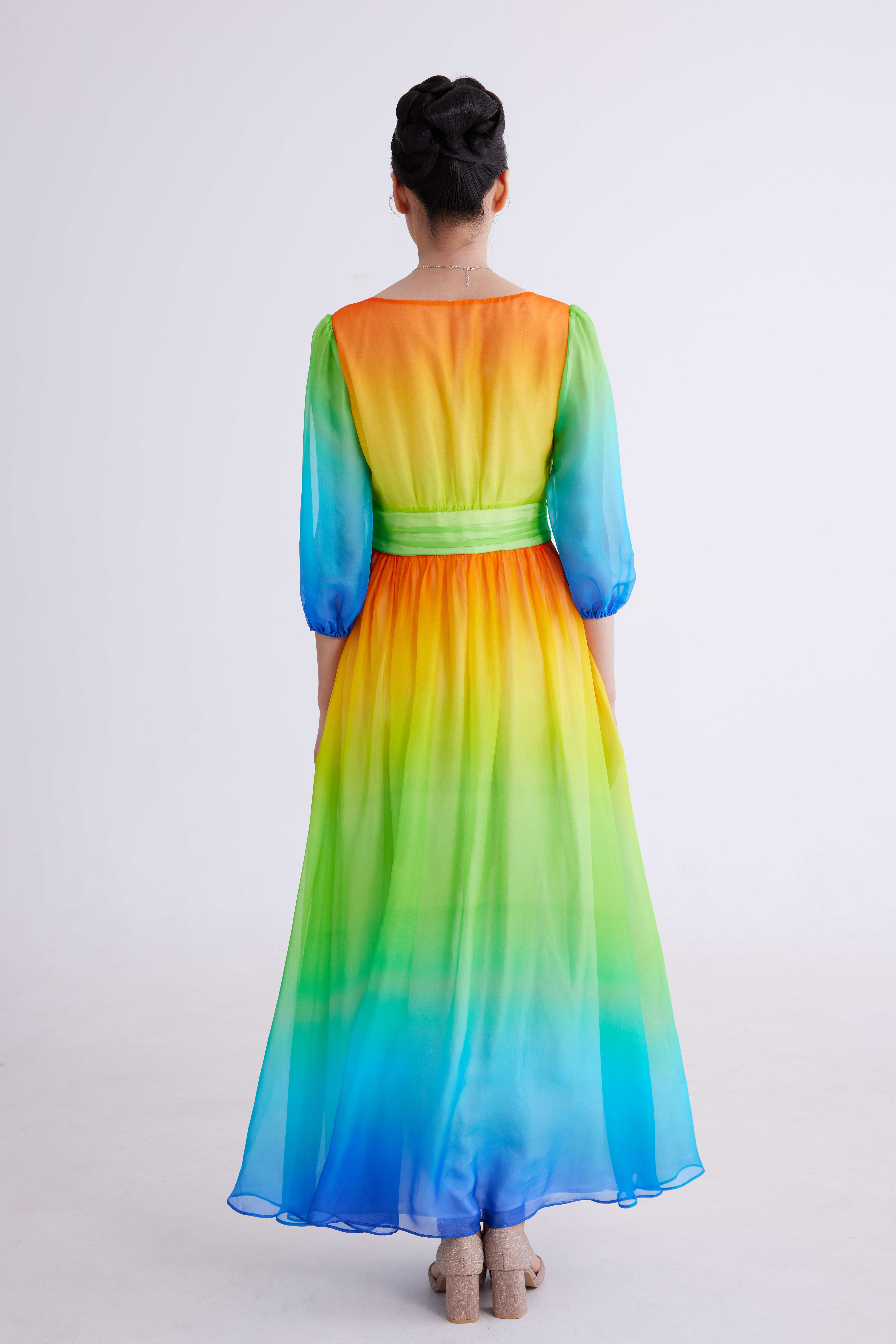 彩虹色渐变纱裙