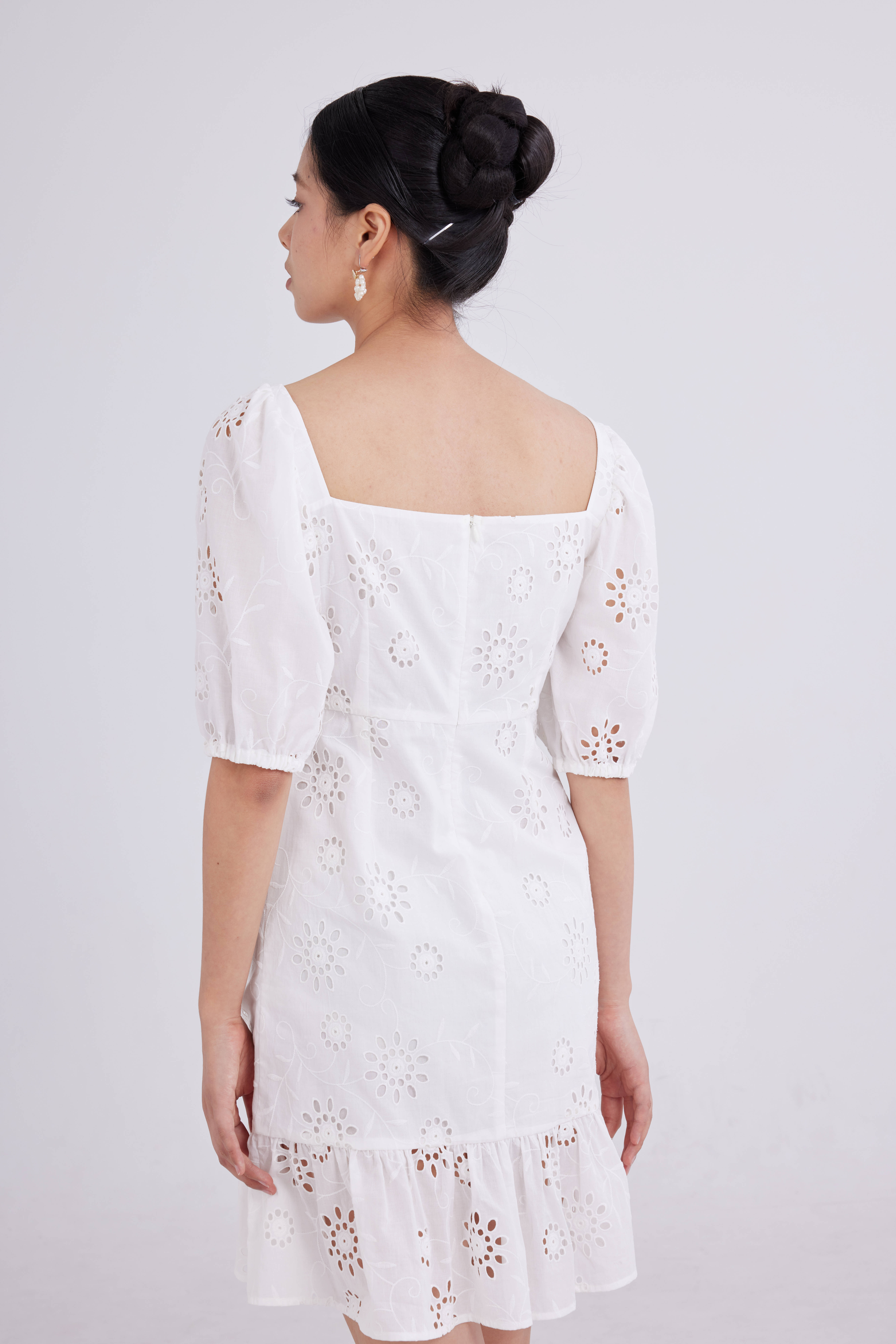 白色打孔刺绣裙