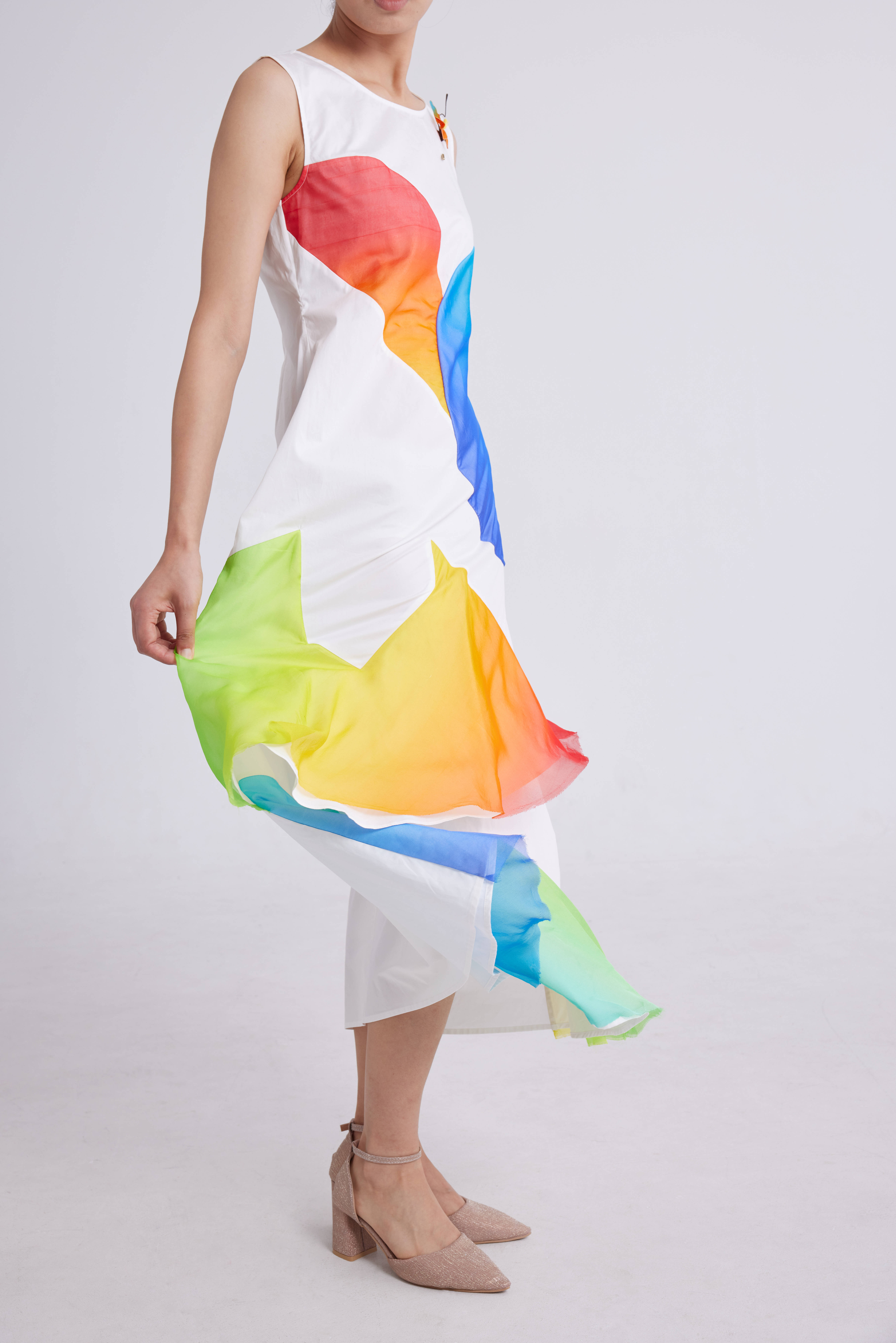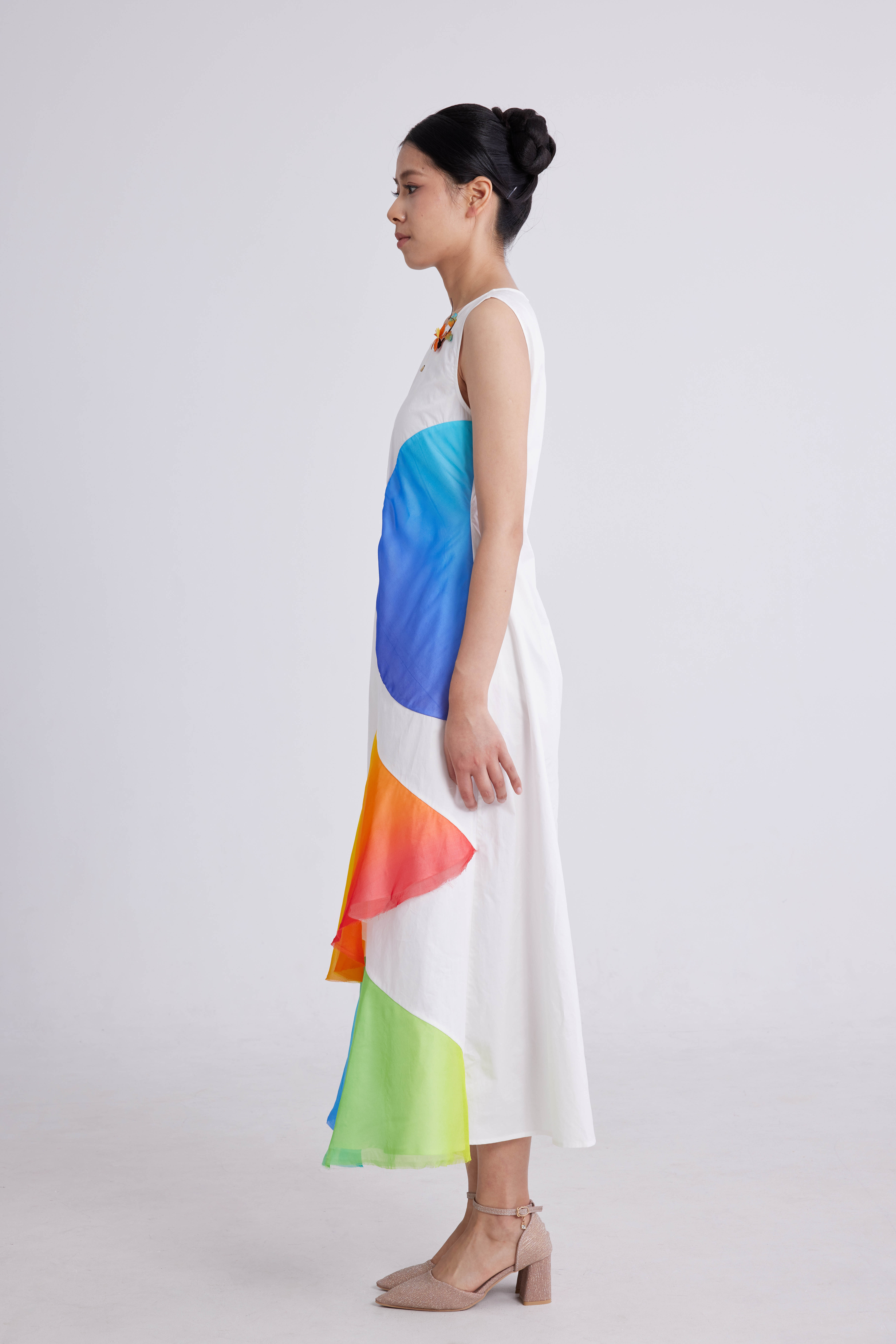 扇形色差连衣裙
