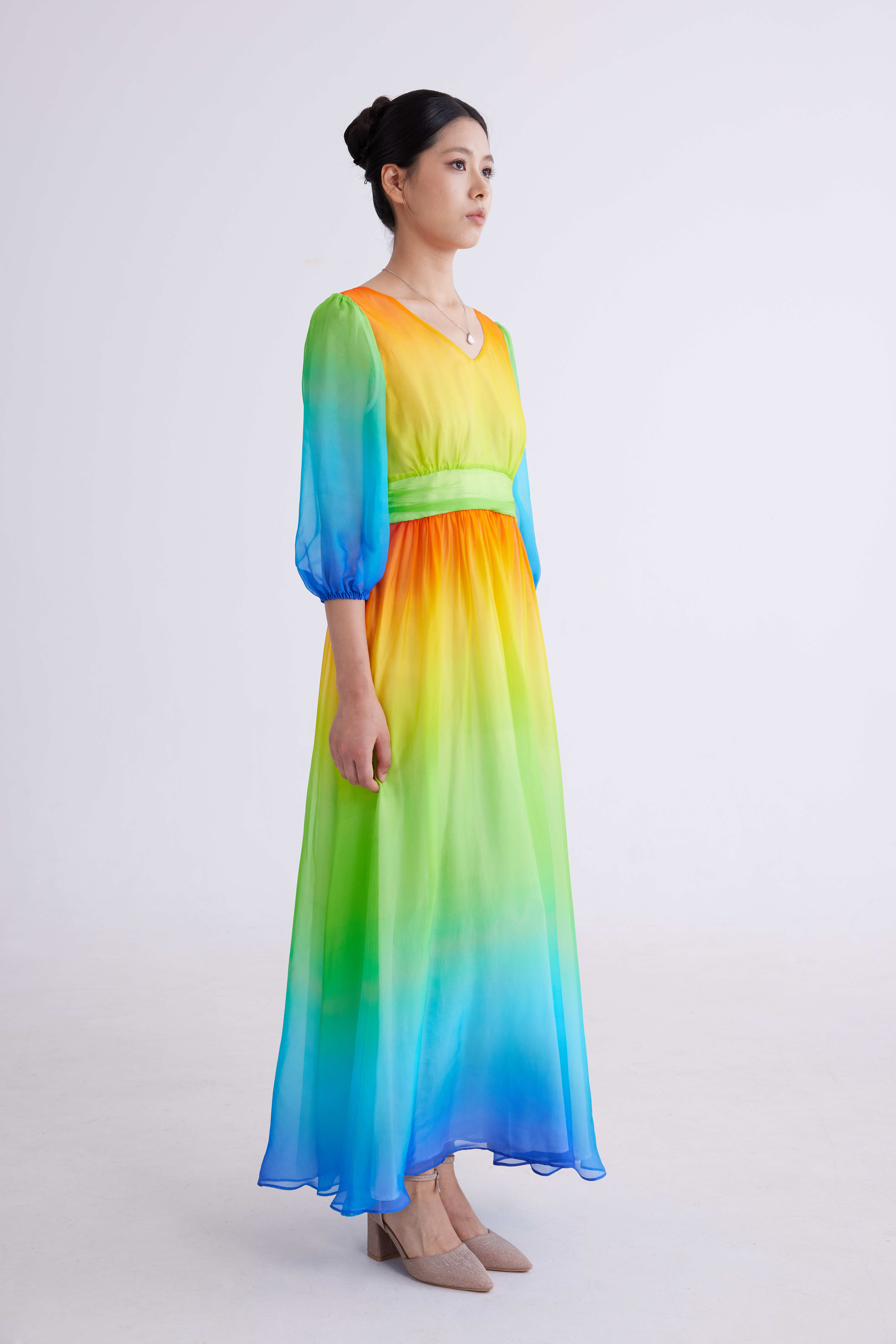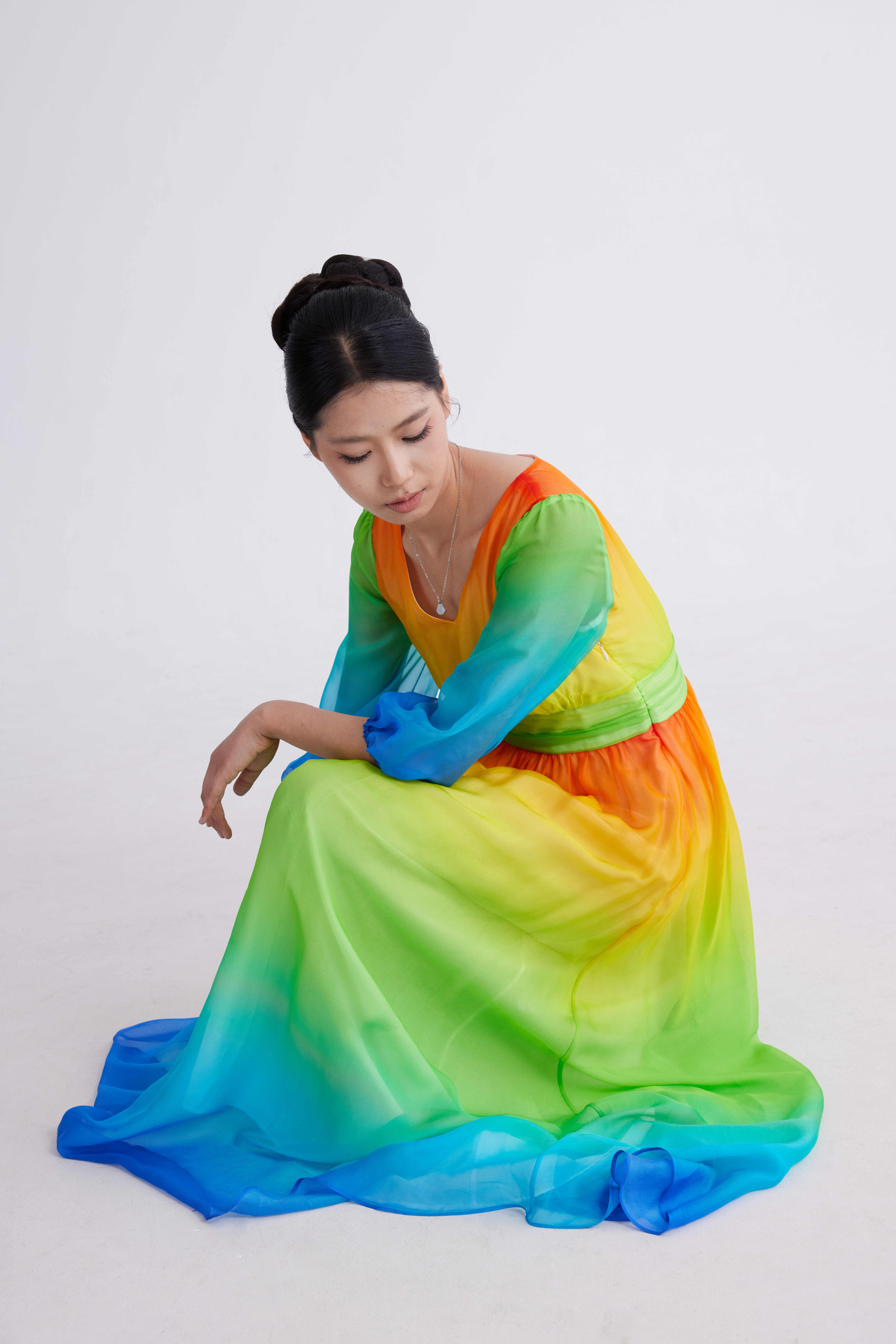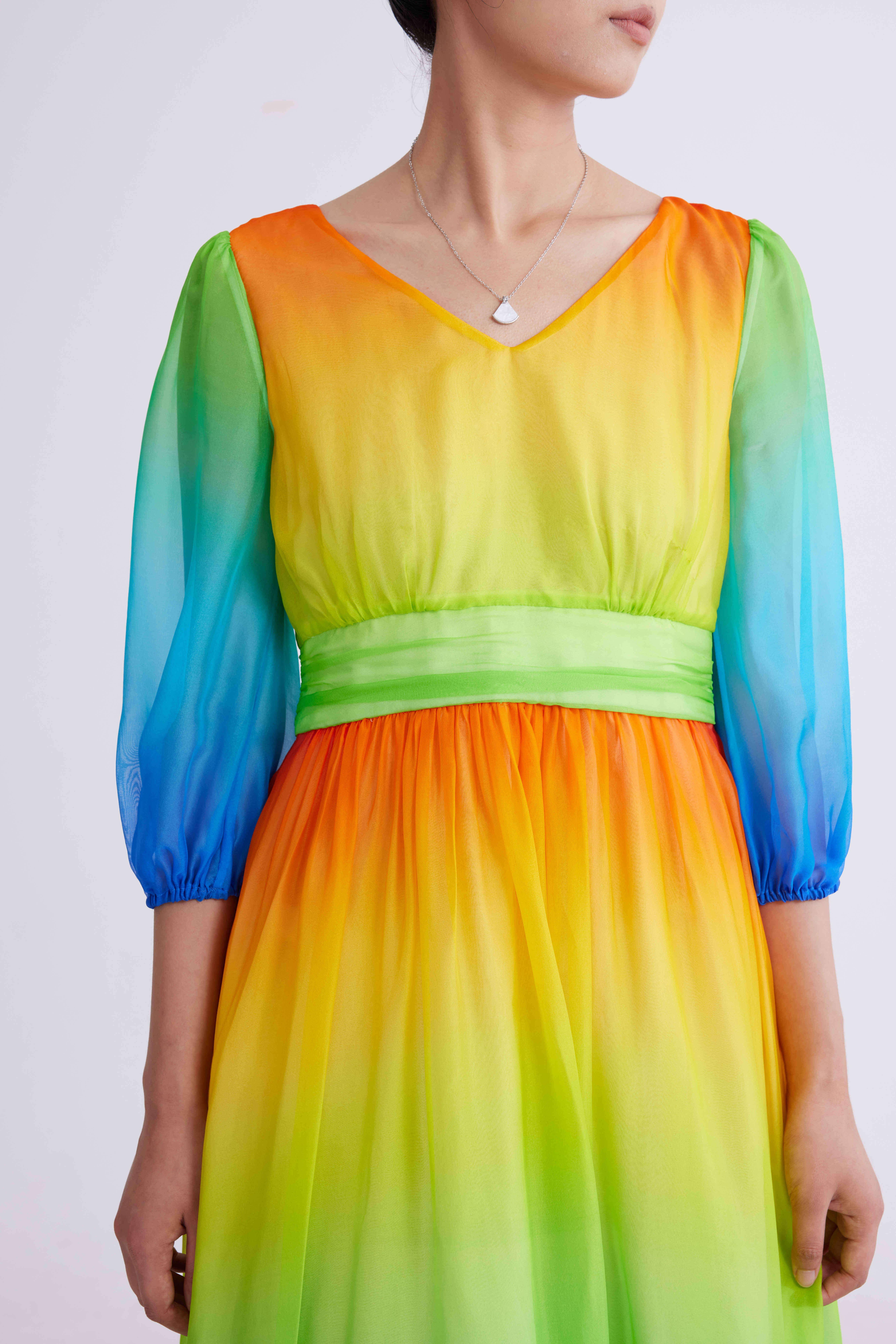 彩虹色渐变纱裙