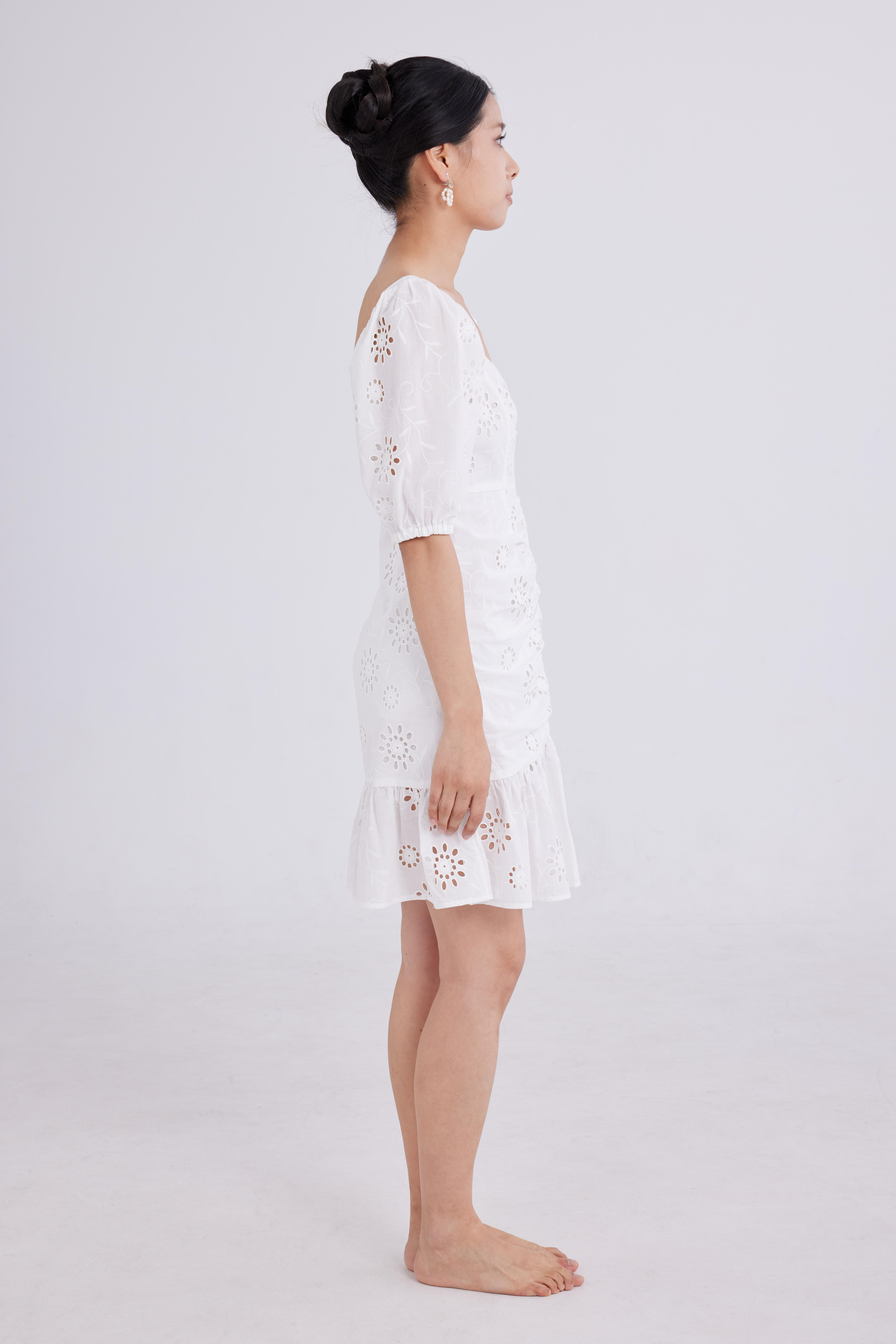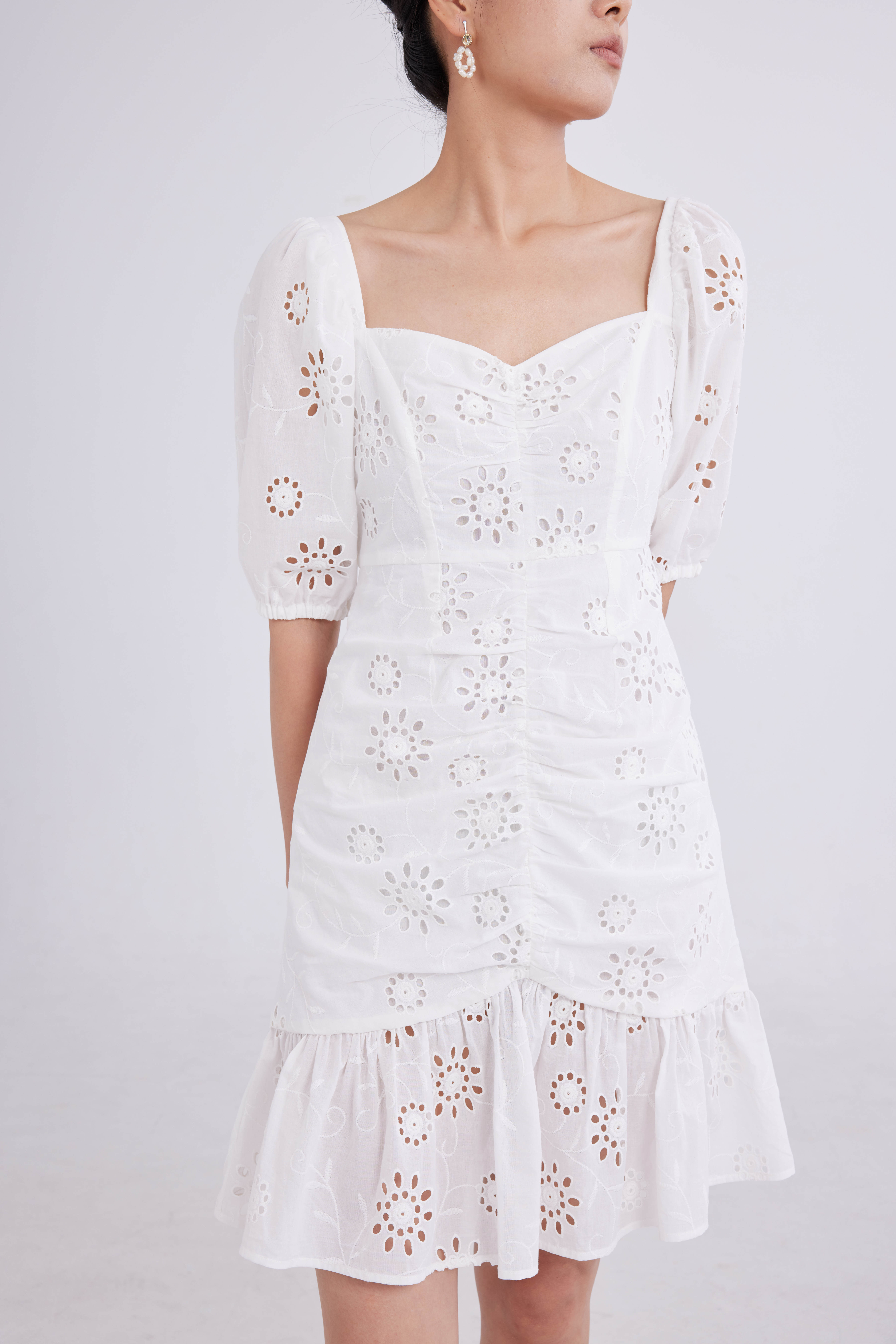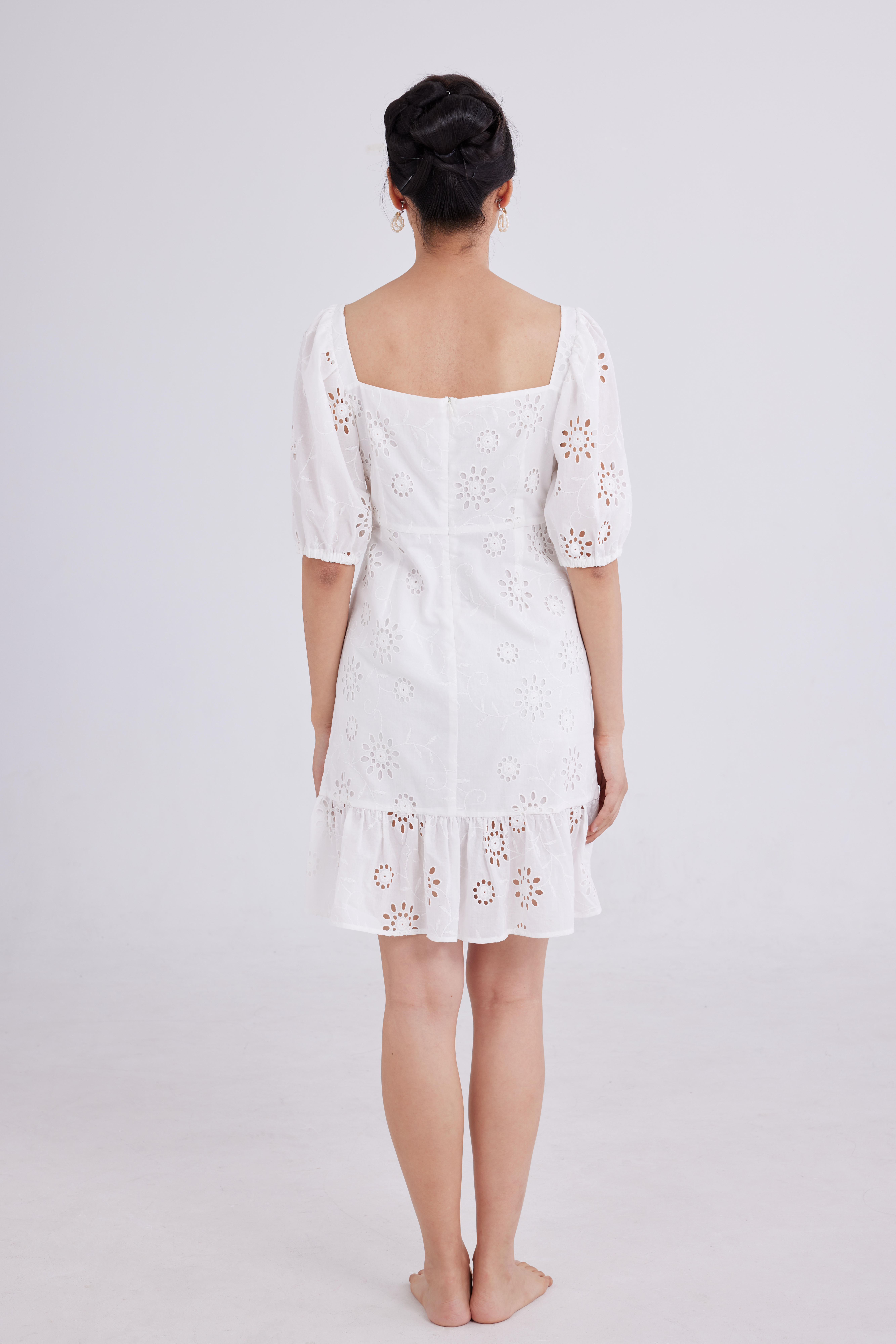 白色打孔刺绣裙
